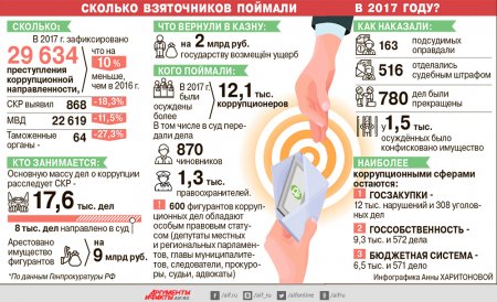 8 лет колонии получил бывший глава ФСИН Александр Реймер за то, что участвовал в схеме по похищению 2,7 млрд руб., выделенных из бюджета на электронные браслеты. А сейчас в СИЗО сидит экс-замглавы ФСИН Олег Коршунов, который, по версии следствия, «обул» государство на 100 млн руб. 10 лет колонии и штраф в 150 млн присудили генералу ФСО Геннадию Лопырёву, который попался на взятках в 7 млн. Идёт следствие по делу экс-полковника МВД Дмитрия Захарченко, у которого нашли при обыске 9 млрд руб.