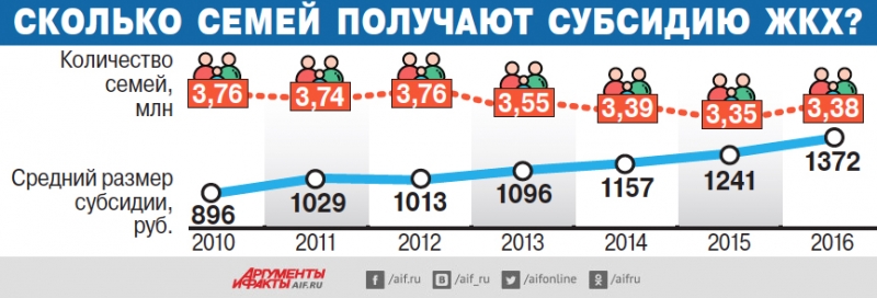 Владлена 28-мар, 09:00 1 414«Не путайте субсидию и льготы по ЖКХ, — говорит исполнительный директор „Школы грамотного потребителя“ Александр Козлов. — Льготы предоставляются определённым категориям — ветеранам, инвалидам и т. д., а субсидию может получить любой гражданин. И неважно, где он живёт — в частном доме, в собственной квартире в многоэтажке или снимает соцжильё. Главным критерием получения является доход человека. Федеральное законодательство установило: максимально допустимая доля расходов семьи на оплату ЖКУ не может превышать 22%. Если траты больше, значит, всё, что свыше, должно компенсировать государство в виде субсидии на оплату ЖКУ. По данным Росстата, её получают 3,38 млн семей, а это 6% от всех семей России. У одних субсидия 3 тыс. руб. в месяц, у других — 500 руб. в месяц. Средний размер по стране — 1372 руб. в месяц».
