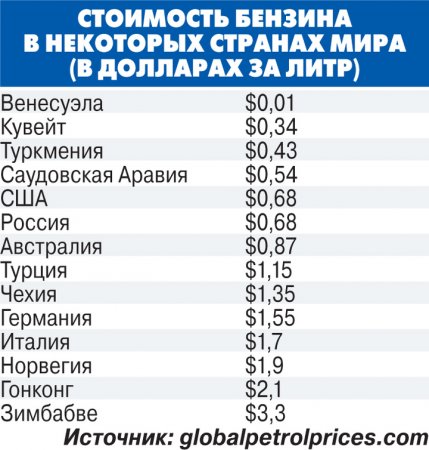 Самый дорогой бензин традиционно приходится приобретать автомобилистам Калифорнии: в Лос-Анджелесе и Сан-Франциско за один галлон горючего (около 3,8 литра) требуют до $4. В пересчете на привычные нам объемы получается, что литр бензина обходится жителям штата в $1,05 (около 70 рублей). В Техасе галлон бензина стоит менее $2. То есть литр топлива там вдвое дешевле — всего $0,5, или примерно 35 рублей.