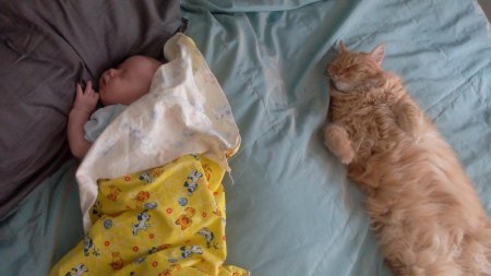 В первые дни дома я отлаживала режим, доставшийся мне и детям от роддомовского расписания кормлений. Правда, теперь в него требовалось впихнуть хлопоты по хозяйству, общение с мужем, пятью котами и чуть-чуть сна, так, в косметических объёмах. (Важная ремарка для всех беременных: впрок выспаться невозможно, но всё равно – спите. Спите так, словно это ваша последняя возможность, спите в любое свободное время, бросьте все дела и спите. Сон. Спаааать. «Спать» – само это слово будет приводить вас в возбуждение, сопоставимое с сексуальным).
