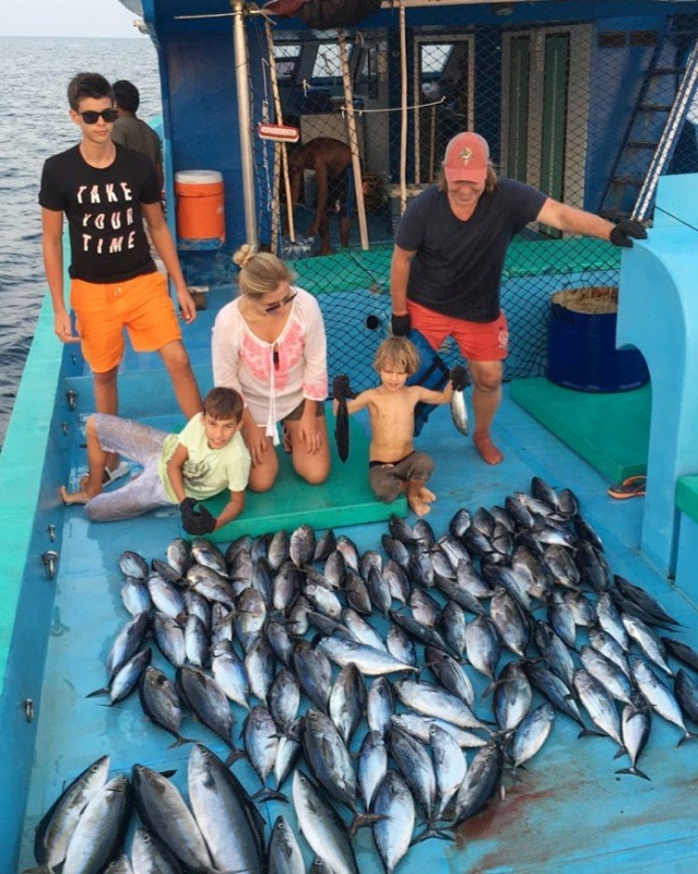 Дети заслуженного артиста России Виктора Дробыша всегда особенно интересовали поклонников. От двух браков мужчина воспитывает четверых детей, трое из которых мальчишки. Старшие сыновья от первого брака, Иван и Валерий, уже взрослые, а младшему Даниилу всего 6 лет. И вот Виктор, всерьез увлекающийся рыбалкой, проводя январь на Мальдивах, не смог устоять перед искушением и отправился учить сыновей тонкому искусству рыбной ловли.
