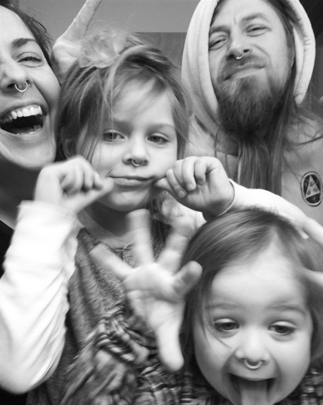 40-летняя Ольга Шелест вместе с супругом Алексеем Тишкиным воспитывает двух дочек: 4-летнюю Музу и 2-летнюю Айрис. Девочки вместе с родителями сейчас находятся в США, штат Вермонт, где всей семьей катаются на сноуборде. По словам Шелест, ее дочки начали осваивать этот вид спорта очень рано: Муза в 1,2 года, а Айрис в 1,5. Ольга славится своим прекрасным юмором, за который она полюбилась зрителям еще в пору ее работы на музыкальном канале MTV в паре с Антоном Комоловым. На этот раз она поделилась с подписчиками в Инстаграме фотографией своей семьи с забавными выражениями лиц, причем у всех в носу вставлены сережки.