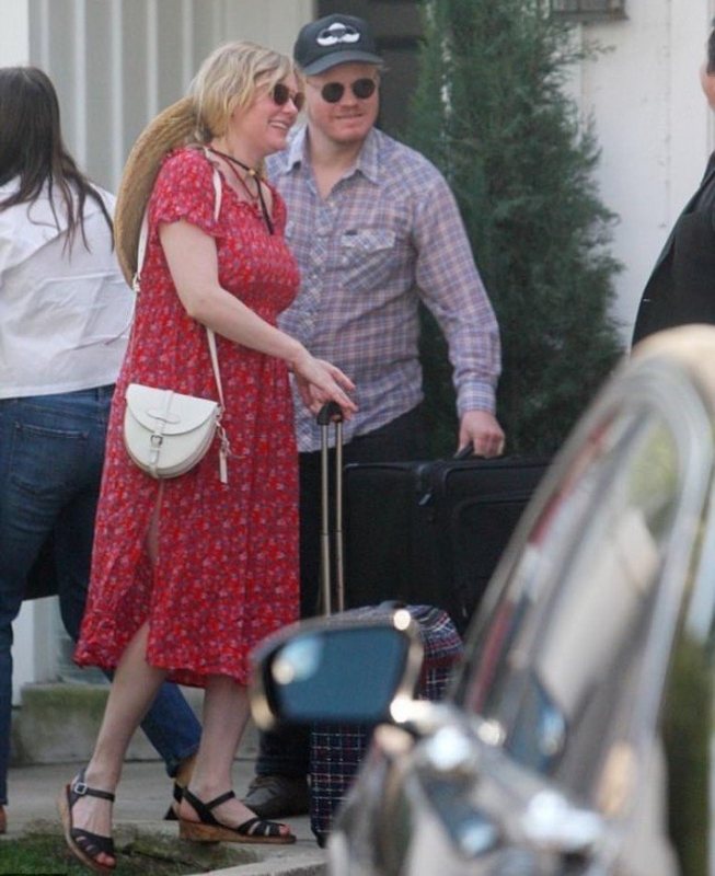О беременности Кирстен Данст стало достоверно известно лишь в конце января, хотя подобные слухи ходили и раньше. Радостную новость 35-летняя актриса сообщила посредством романтичной фотосессии, демонстрирующей округлившийся живот. С тех пор Кирстен повсюду активно преследуют папарации, пытаясь сделать снимок беременной актрисы. К сожалению, некоторые из них нельзя назвать удачными. Недавно Кирстен появилась в аэропорту Лос-Анджелеса, выбрав для себя свободное красное платье с цветочным узором, значительно увеличившее не только размеры актрисы, но и ее возраст.