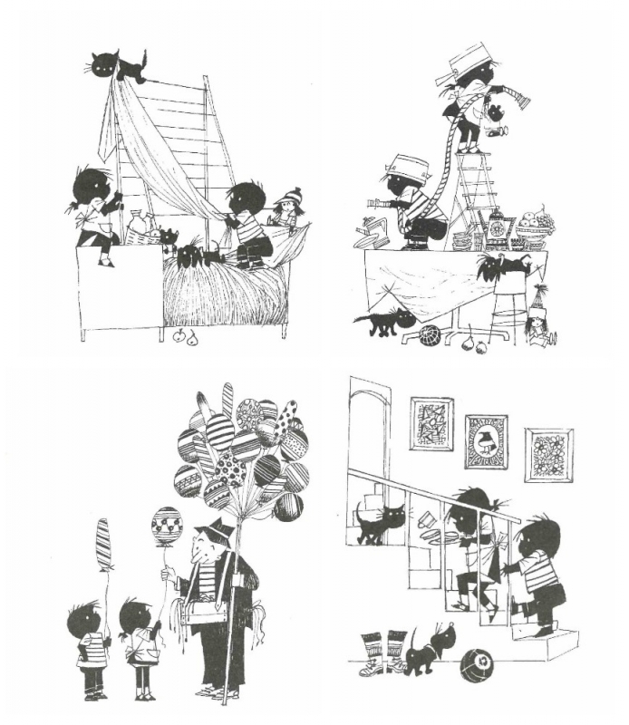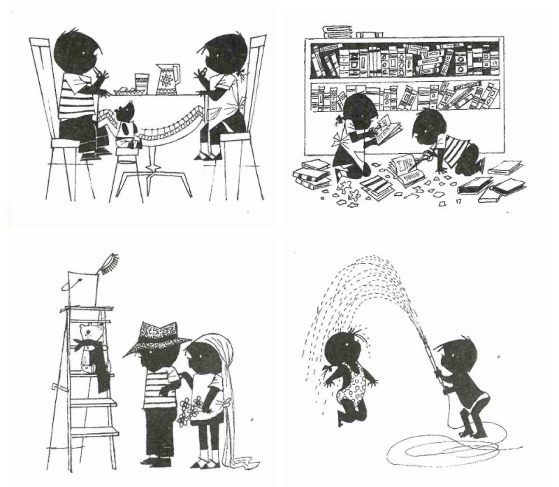 Хотите познакомиться с Сашей и Машей поближе? Тогда читайте книги голландской писательницы Анни М.Г. Шмидт. Имена главных героев при переводе были изменены на более понятные, в оригинале детей зовут Йип и Йанеке. Кроме детей в книге фигурируют их родители, пес Таки, кошка Стеша, Мишка и Куклатаня. Каждая книга (всего их пять) состоит из множества коротеньких историй. Истории между собой не связаны, поэтому рассказы можно читать в любом порядке. Иллюстрации в книге черно-белые, их создала художница Фип Вестендерп. Кому-то они могут показаться мрачными, но не мне — может быть, потому, что когда я была маленькой, у половины детских книг были черно-белые рисунки.