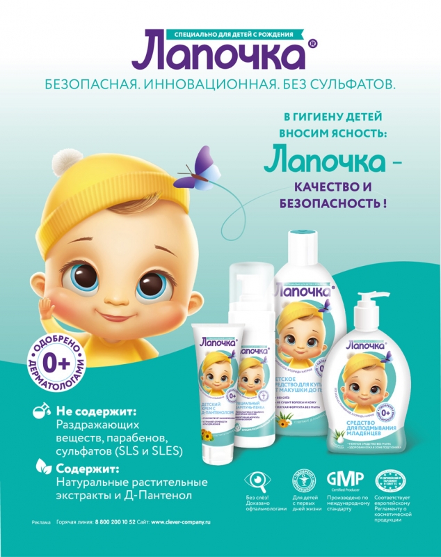 Всем этим требованиям отвечает детская косметическая серия ТМ "Лапочка". В состав продуктов серии "Лапочка" входят: