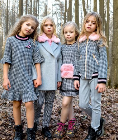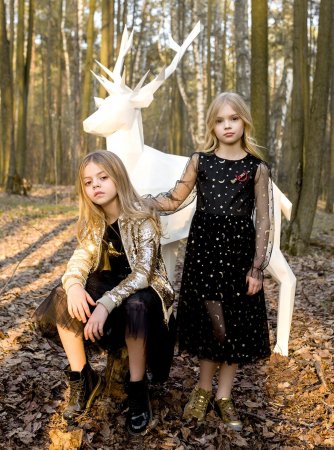 Объемные шевроны, легкая сетка, яркие принты. Для каждой возрастной группы подобраны различные варианты сочетаний: удобные костюмчики свободного кроя и боди с капюшоном для малышей, приталенные силуэты платьев и пышные, блестящие, шифоновые юбки для девчонок постарше. Наряды поражают воображение даже искушенных ценителей моды, словно сошедшие с глянцевых страниц модных журналов, они созданы на любой вкус и стиль. Каждая девочка сможет почувствовать себя в центре внимания — модной, яркой и очаровательной.