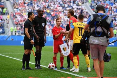 Следующая поездка состоялась в июле. Санкт-Петербург, матч за третье место Бельгия-Англия. Сын выиграл в конкурсе за право выносить монетку для судей.