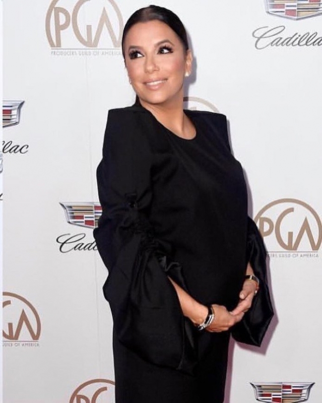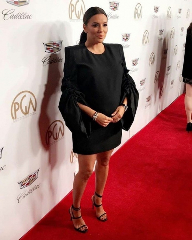 Последний выход беременной красавицы в свет тоже вызвал бурю лестных отзывов ее фанатов. Лонгория пришла на Премию Гильдии продюсеров в коротком черном платье с объемными плечами у рукавами. Платье, надо сказать, весьма спорное по обилию деталей, однако округлившуюся Еву оно никак не испортило. Пользователи сети Инстаграм пришли в восторг. "Какая же она красотка и как ей идет беременность""Ее улыбка скрывает все недостатки фигуры. Беременность прям позитивная""Ножки хороши, беременность есть беременность, но она позитивно ее носит""Видно счастливую женщину. Беременность к лицу""Платье громоздкое само по себе, но на ней смотрится очень органично!"