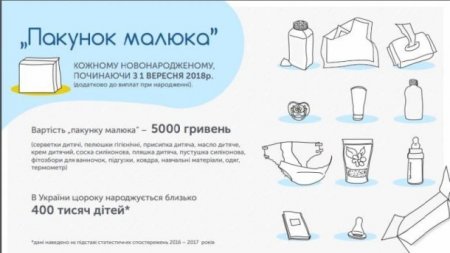 С 1 сентября 2018 года роженицы в Украине будут получать бесплатный бэби-бокс – набор вещей и средств гигиены, необходимых для ухода за малышом в первые месяцы жизни. Молодые мамы будут получать набор вещей для новорожденного в роддоме, помимо финансовой помощи при рождении ребенка. Планируется обеспечить такими наборами каждую роженицу, которая стояла на учете по беременности в женской консультации. «Это традиция, которую мы вводим для поддержки рождаемости. Сотни тысяч семей получат такую дополнительную целевую поддержку», - сказал премьер-министр Владимир Гройсман. В бэби-бокс входит набор одежды для малыша, пеленки, влажные салфетки, термометр, пустышка и соска, бутылочка для кормления, присыпка, детское масло и крем, фитосборы для ванночек, подгузники, два одеяла, а также учебные пособия по уходу за новорожденным. Общая стоимость украинского бэби-бокса составит 5 тысяч грн. Практика вручения бэби-бокса молодым матерям распространена во многих странах мира, в частности, такие наборы вручают женщинам в США, Канаде. Великобритании, Норвегии и Финляндии. В Финляндии такие коробки раздавали малообеспеченным роженицам с 1930-ых годов, но уже давно их раздают всем, без исключения, в том числе принцу, который недавно стал отцом.