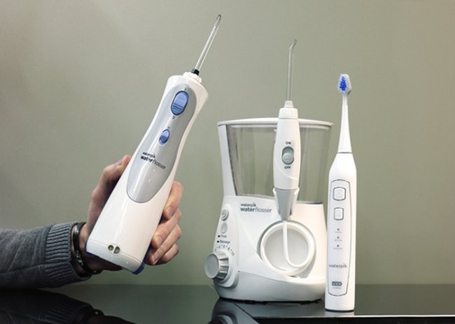 Что это такое? Это специальное устройство для ухода за полостью рта, которое с помощью подаваемой под давлением пульсирующей струи воды удаляет зубной налет, очищает межзубные промежутки, десневые карманы и другие труднодоступные участки ротовой полости, куда зубная щетка просто физически не может попасть. Но самое главное то, что ирригатор еще и ухаживает за деснами – массирует их, укрепляет и улучшает в них кровообращение. Ирригатор Waterpik рекомендован не только при проблемах с деснами, но и тем, у кого есть брекеты, коронки, имплантаты, мосты, протезы, а также всем тем, кто хочет предотвратить возникновение каких-либо стоматологических заболеваний.