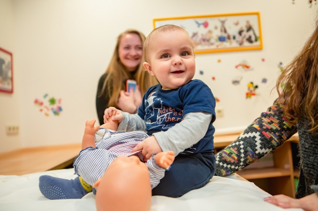 Также в Инновационном центре есть игровая комната, куда мамы приводят малышей поиграться, а заодно проверить Pampers «на прочность». Через несколько часов после того, как дети поигрались, побегали, поели, возможно даже, поспали, мамы относят их в лабораторию, где специальным прибором будут измерять у малышей влажность кожи под подгузником и рядом, а затем сравнивать показатели.