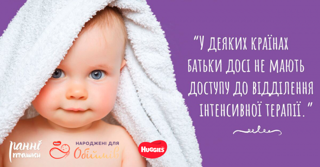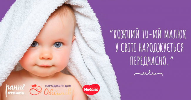 Підтримувати родини й допомагати малюкам у виживанні — важлива місія. Компанія Kimberly-Clark, зокрема бренд Huggies, створила проєкт "Народжені для обіймів", мета якого — впровадження методу "Кенгуру" в перинатальних центрах України. Вже 4 роки вони підтримують малих поспішайок. Місія Huggies — турбота про малюка з першого дня. До Всесвітнього дня передчасно народжених дітей Kimberly-Clark разом із ГО "Ранні Пташки" ініціювали благодійну акцію.