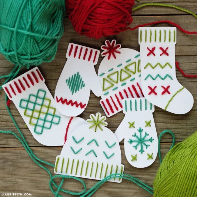 Новогодняя вышивка - это не просто способ занять чем-то руки детям или себе. Но и прекрасный способ сделать своими руками оригинальную открытку или украсить поздравление на Новый год 2020. Мы собрали простые схемы для новогодней вышивки крестом и гладью, которые можно использовать как для вышивки по ткани, так и по картону. А также с ними смогут справиться даже дети. Эти простые схемы помогут сделать своими руками оригинальные украшения на елку или для квартиры, открытки или именные карточки, которые обычно крепят к подарку на Новый год 2020. Видео: как сделать новогоднюю вышивку крестом на картоне Новогодняя вышивка крестом и гладью для детей на картоне Вышивка крестом не обязательно должна быть сложной. Есть схемы, которые под силу детям и начинающим взрослым, даже если они до этого ни разу в руках иглу не держали. К тому же вовсе не обязательно сразу же браться за вышивание новогодних узоров на канве, можно начать с тренировке на картоне. Как вышивать на картоне узоры к Новому году, вы можете посмотреть на видео выше. Здесь мы представим идеи для вышивки и самые простые схемы. Можно вырезать из картона практически любую фигурку, сделать в ней перфорации и предложить ребенку украсить ее вышивкой по своему усмотрению. Фото liagriffith.com Мини вышивки крестом на Новый год Такие маленькие схемы для новогодней вышивки крестиком подойдут тем, у кого уже есть хоть какой-то опыт в вышивании. Они не очень сложные и не очень большие, но это не делает их менее праздничными и красивыми. Теперь у вас есть идеи и схемы простых мини вышивок для детей и начинающих взрослых к Новому году.
