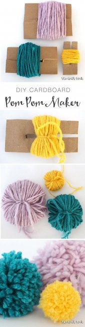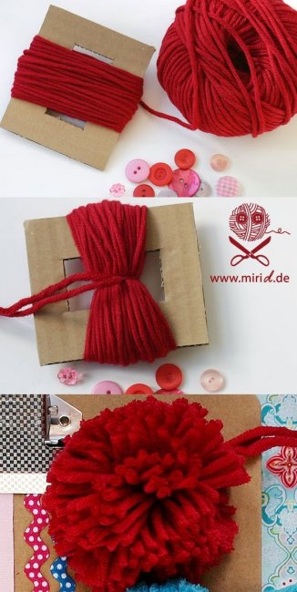 Мы выбрали несколько простых мастер-классов с фото, как сделать помпон из ниток своими руками. Запаситесь разноцветной пряжей, картоном, ножницами и терпением - будем делать помпоны. Помпоны сами по себе дововльно приятная и симпатичная штука. Но из них также можно сделать массу прекрасных вещей: мобиль для детской кроватки, коврик, игрушки из помпонов или открытку на для мамы. Так что поверьте, если вы один раз попробуете один из способов, как сделать помпон из ниток (пряжи) своими руками, то потом вы не сможете остановиться. Это просто, весело и, как ни странно, может быть весьма полезно. Вот например, если ваш ребенок, подросток ищет способы заработать, предложите ему делать разные красивые вещи из помпонов своими руками. А как делать помпоны из ниток (пряжи) своими руками быстро и просто, он сможет узнать благодаря мастре-классам с фото, собранным в нашем материале. Как сделать маленький помпон своими руками при помощи вилки Суть всех мастер-классов с фото, как сделать помпон из ниток (пряжи) своими руками в принципе одна и та же. Меняются только приспособления. Это может быть вилка, кусок картона, вырезанный определенным способом или втулки от туалетной бумаги. В любом случае вам нужно будет намотать на приспособление множество слоев нити (чем пышнее должен быть помпон, тем больше). Затем крепко перевязать намотанную нить посередине, это будет центр помпона. И разрезать по краям место соединения намотанной нити. Но одних слов мало, лучше посмотрите внимательно фото, где детально и понятно показано, как сделать помпон из пряжи. Как сделать помпон из ниток при помощи картонки Специальное приспособление для того, чтобы сделать помпон, в данном случае - это простая прямоугольная картонка, с горизонтальной прорезью посередине.Эта прорезь нужна для того, чтобы было удобно продеть нитку, которой вы будете стягивать нитки, чтобы сформировать помпон. Как сделать помпон из ниток при помощи картонки-рамки Еще один лайфхак - Как сделать помпон своими руками при помощи картонных втулок Картонные втулки от туалетной бумаги или бумажных полотенец могут быть весьма полезными. Возьмите две втулки, плотно прижмите друг к другу, и намотайте пряжу на них. Когда пряжи будет достаточно,. проденьте нитку между втулками, и завяжите середину помпона. Выньте втулки, разрежьте края пряжи. Подровняйте помпон. Как сделать помпон из пряжи своими руками при помощи табуретки Этот способ, как сделать помпоны просто и быстро пригодится не столько ленивым, сколько тем, кому нужно много помпонов. Например, если вы собрались делать венок на двери, занавеску или коврик из помпонов. Тогда просто намотайте пряжу на ножки табуретки, сделайте перетяжки нитками в месте предполагаемой середины будущих помпонов. Затем разрежьте моток на много маленьких помпонов, как показано на схеме. Как сделать помпон из ниток при помощи картонных колец Почему-то именно этот способ как сделать помпон, считается традиционным. Хотя он наиболее трудоемкий из всех описанных выше. Тем не менее, не упомянуть его мы не можем. Вам понадобятся два одинаковых кольца из картоа с вырезанными серединками, между которыми нужно продеть нить для завязывания. Потом вы наматываете пряжу, как и в предыдущих случаях, во много слоев. Когда вам покажется, что уже достаточный объем для помпона, завяжите закр