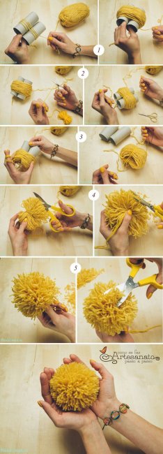 Как сделать помпон своими руками при помощи картонных втулок