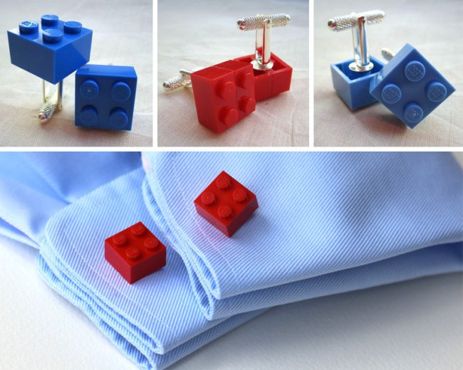 Папа носит рубашки с запонками? Прекрасно! Вот и еще один вариант подарка для папы своими руками. Если к лицевой стороне запонки приклеить детали Лего, получиться стильный аксессуар в подарок папе на день рождения, День отца или любой другой праздник.