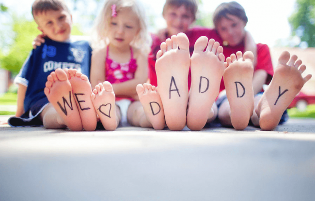 Мама может стать зачинщиком прекрасного подарка папе от детей, предложив малышам сделать оригинальное фото. Вы можете придумать что-то свое для фотосессии или вдохновиться вот такими прекрасными идеями.