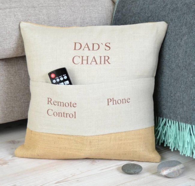 Диванная декоративная подушка специально для папы — разве можно найти для папы подарок оригинальнее, чем этот? А сделать такой прикольный подарок можно своими руками, используя для подушки старый свитер, старую папину рубашку или любую другую плотную ткань. А как сделать декоративную диванную подушку своими руками, читайте по ссылке.