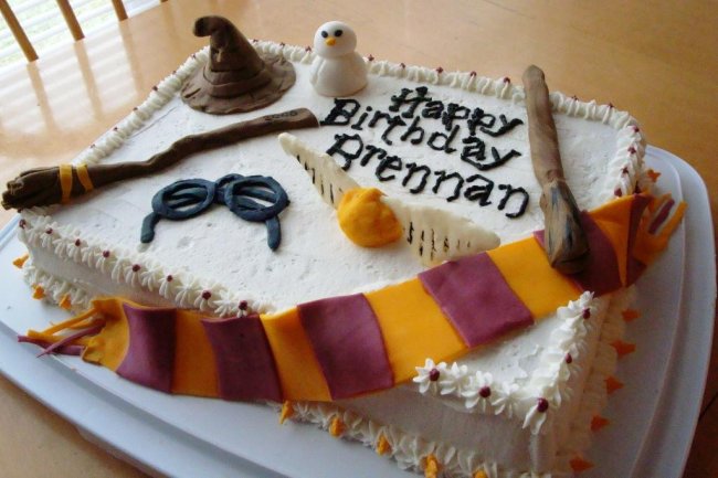 Именинный торт. Главный атрибут детского дня рождения в стиле Гарри Поттера, конечно же, торт, который должен обязательно быть оформлен в общей тематике праздника с фигурками персонажей или элементами из мира магии.