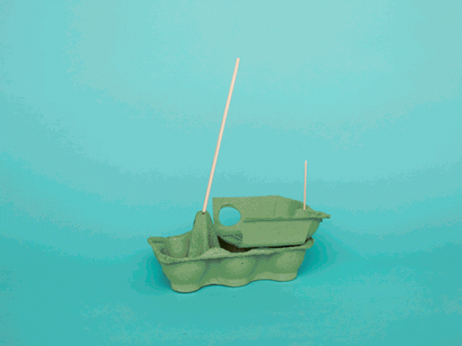 Если обычные бумажные кораблики уже надоели, предлагаем смастерить настоящий фрегат из картонных контейнеров от яиц.