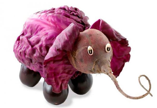 Вироби з овочів на свято осені: Слоненя з капусти, буряка і баклажанів