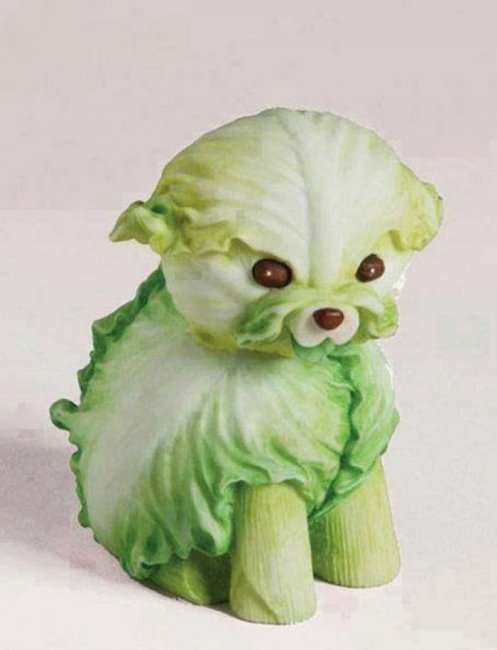 Приміром, зелений огірок нагадує крокодила, а темно синій баклажан — кумендного пінгвіна, цибулинка схожа на котика, а цвітна капуста легко перетворюється на ягня.