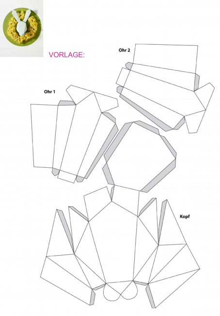 Такое украшение для детской комнаты можно использовать не только на Пасху. Сделать его проще простого: распечатайте шаблон, вырежьте, а затем согните бумагу по линиям сгиба. Детали вы можете найти в статье: "Полигональный заяц из картона своими руками".