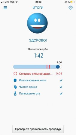 Приложение запускает таймер на каждую зону полости рта, регулирует нажим щетки, ведет статистику качества чистки и записывает результаты в дневник, который при желании вы можете отправить стоматологу.