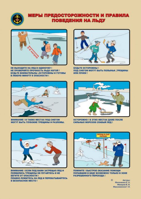 Заместитель начальника Московской городской поисково-спасательной службы на водных объектах (ГКУ «МГПСС») Александр Рангаев рассказал Агентству городских новостей «Москва» об опасности нахождения на льду: «Опасные места на льду водоема: площадки, покрытые толстым слоем снега, чистые прогалины на снежном покрове, темные пятна, предупреждающие о непрочности льда, места с вмерзшими в лед камышами, водорослями или какими-то другими предметами, места сбрасывания промышленных вод» Если вы все же провалились под лед, нельзя поддаваться панике: «Если лед под вами провалился, зовите на помощь. Не поддавайтесь панике, действуйте быстро и решительно, пока не намокла одежда, не замерзли руки. Не допускайте погружения в воду с головой. Избавьтесь от всех тяжелых вещей, широко раскиньте руки, обопритесь о край полыньи и медленно, ложась на живот, наползайте на край льда грудью или спиной, поочередно вытаскивая на поверхность ноги. Выбирайтесь на крепкий лед в ту сторону, откуда вы шли. Можно использовать острые предметы: нож, близлежащую ветку, палку. Наползайте на кромку льда снова и снова, пока не окажетесь на твердой поверхности. Выбравшись из промоины, осторожно откатитесь и ползите до самого берега, где уже безопасно вставать на ноги» Выбравшись из воды, как можно скорее постарайтесь оказаться в тепле, переоденьтесь в сухую одежду и выпейте горячий напиток, а ели произошло переохлаждение и обморожение, вызывайте скорую помощь. Памятка, которую обязательно нужно показать детям Даже если водоем давно знаком, помните: выходить на лед без разрешения взрослых НЕЛЬЗЯ! спускайтесь на лед там, где нет промоин или вмерзших в лед кустов, водорослей; лед может быть непрочным около стока вод, например, стока с завода или фабрики; на замерзшей речке или пруду надо обходить сугробы и места, где много снега; если ты собираешься перейти речку в сомнительном месте, нужно проверять прочность льда палкой. Если при ударе начинает проступать вода, значит лед непрочен и нужно немедленно идти назад. причем первые шаги надо делать, не отрывая подошвы ото льда – осторожно скользить назад. Запомни самое главное: Выбираться надо в ту сторону, откуда пришел. Лед там проверен твоими же ногами. на лед надо наползать, стараясь не ломать кромку. Широко раскидывай руки. Сначала лед может ломаться. Пусть это не приводит тебя в отчаяние. Ты знаешь, что это бывает, поэтому не сдавайся. Надо наползать на кромку снова и снова. Очень важно не погрузиться в воду с головой! Если рядом есть люди, зови на помощь. Но сам не прекращай бороться – время терять нельзя Выбравшись на лед, от полыньи надо откатиться, а потом ползти по своим следам к берегу. оказавшись на берегу, надо сразу попытаться переодеться в сухое и согреться. как это сделать, тебе придется решать самому – может быть, побежать к ближаейшему дому. Но надо знать наверняка – пока ты не в тепле, нельзя останавливаться и отдыхать. Согласно статистических данных, в большинстве случаев гибели на водоемах, в осенне-зимний период, жертвами льда становятся мужчины – любители подледного лова, дети, оставленные без присмотра, а также те, кто, пренебрегает советами спасателей, и выходят на неокрепший, рыхлый и непрочный лед. Как правило, во время становления льда, водоемы замерзают неравномерно, по частям: сначала у берега, на мелк