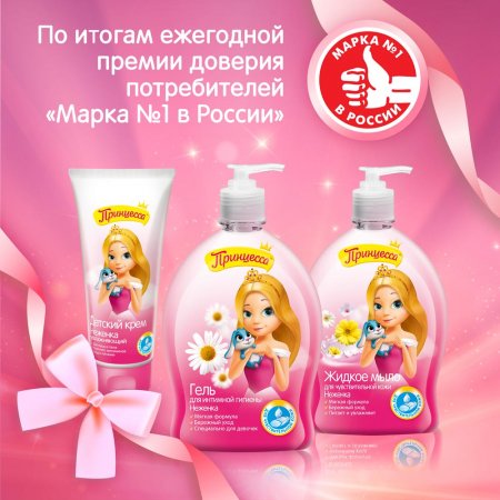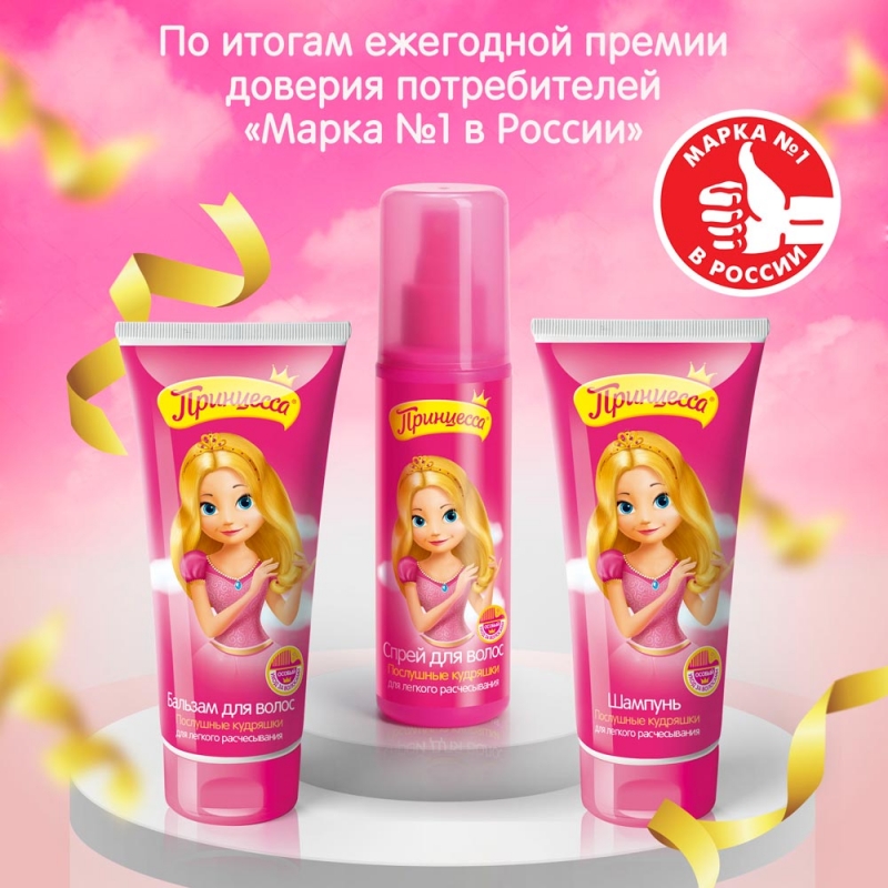 "Принцесса" создана специально для маленьких и подрастающих Принцесс. В этой линейке есть все, что необходимо девочке — от средств для ухода за волосами и телом до декоративной косметики, нежнейшей парфюмерии, зубных паст и специальных продуктов ("Послушные кудряшки", "Некусайка). Выпускаются также подарочные сеты — идеальное подарочное решение на день рождения девочки (3-10 лет).