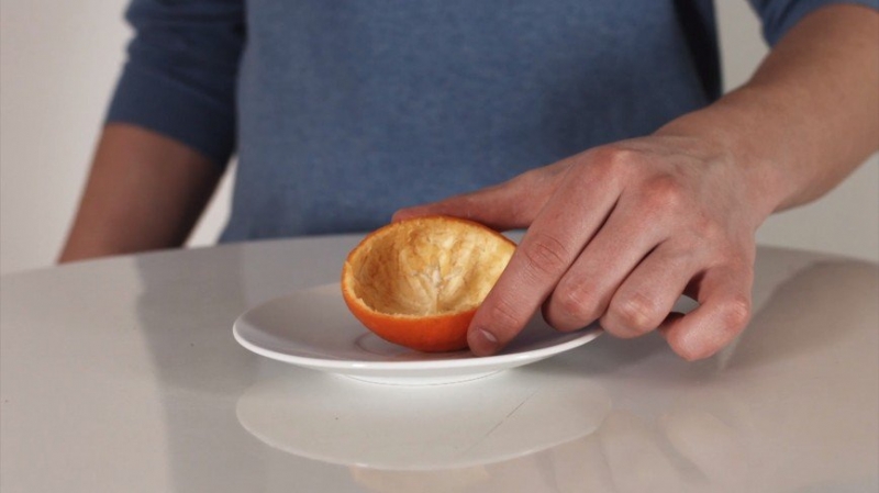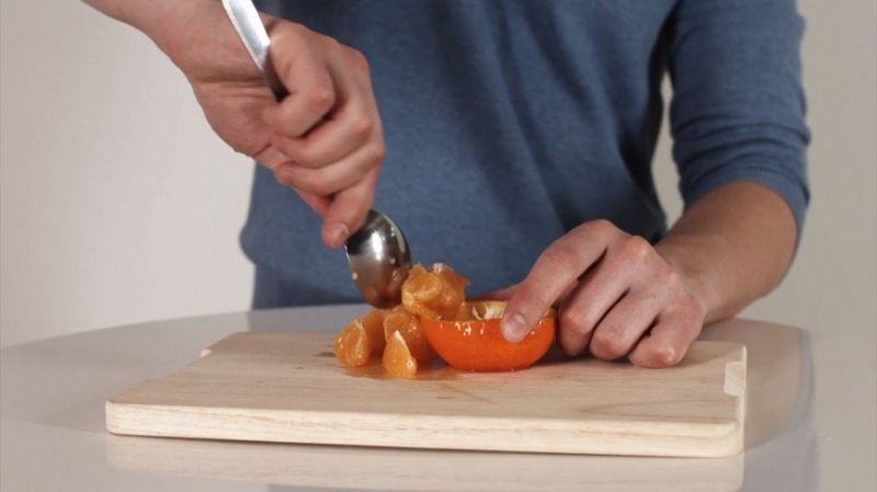 Убираем всю мякоть так, чтобы осталась только кожура.