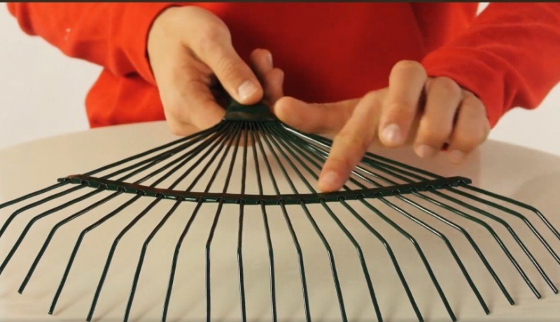 Ёлка из грабельМы в лайфхаках заявляем: хватит уже наступать на одни и те же грабли! Сделайте из них ёлку. Вам понадобится насадка на веерные грабли — их ещё называют «грабли для уборки листьев». Грабли нам нужны зелёные, если не найдёте экземпляра нужного цвета — краски с кистью или баллончик вам в помощь!
