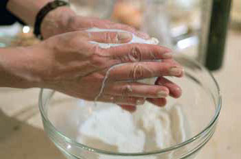 - Куриные грудки измельчить в комбайне, добавить вымоченный в молоке и хорошо отжатый хлеб, фисташки, лимонную цедру, молотый кориандр, немного оливкового масла, соль и перец, тщательно вымесить.