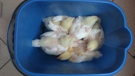 Птенцам ровно 2 недели, они готовы к отъезду в курятник, где их ждет дальнейшая, хоть и не слишком длинная жизнь.