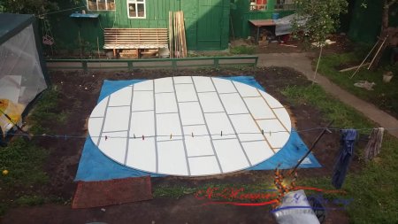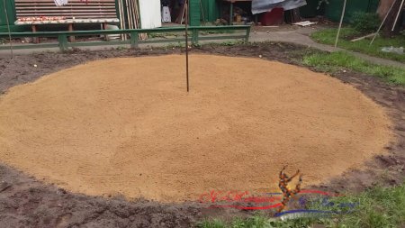 Далее готовое углубление нужно засыпать небольшой слой песка, утрамбовать и выровнять. Дальше снова следуем инструкции по сборке конструкции.