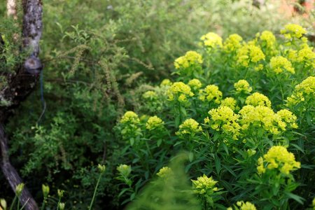 Еще один вариант маскировки — мощнейший молочай болотный. Он после цветения немного полегает и прикрывает все, что угодно.