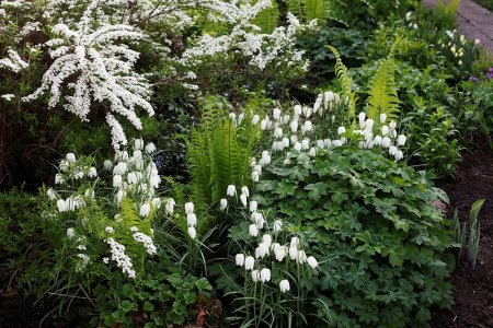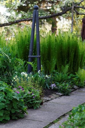 Мое любимое растение — рябчик шахматный. Здесь белая разновидность. Они любят тень и влажность, в природе растут на сырых лугах. Так что можно дополнять их растениями, которые хорошо разрастаются в таких условиях — например, флоксом побегоносным. Кстати, листва у рябчиков тонкая и незаметная.