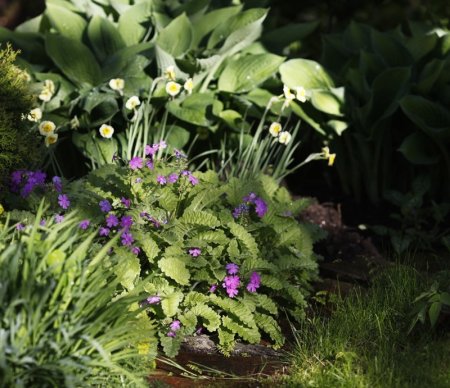 Нарциссы любят свет, в отличие от широколистных растений. Поэтому трудновато подобрать им партнеров. Я все же сажаю в тени, за хостами, и цветут они чуть хуже, чем могли бы.