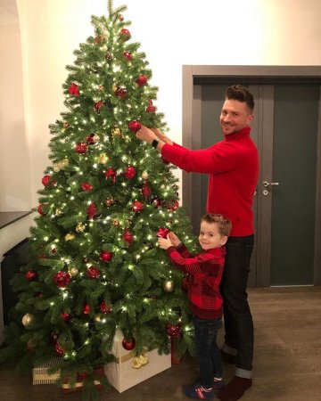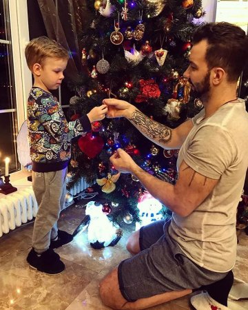 Сергей Лазарев«Никита очень ждал появления новогодней ёлки в доме, так как он давно написал письмо Деду Морозу и хотел его положить под елку, но так как папа был в туре, он терпеливо ждал моего возвращения и того момента, когда я наряжу елку с нетерпением ждем Нового года, который принесет нам, я уверен, только добро, любовь и удачу. (елка искусственная, я против живых елок)»