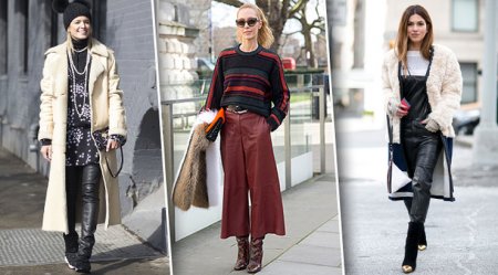 Прекрасными зимними днями отличным вариантом являются также кюлоты и брюки-палаццо, штанины которых скрывают каблук обуви.