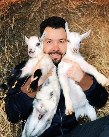 Richards 10-янв, 22:05 2 033Певец Денис Клявер на выходных решил некоторое время погостить у родителей своей жены Ирины. Больше всего ему там, по всей видимости, понравились козлята, с которыми он с удовольствием сфотографировался.