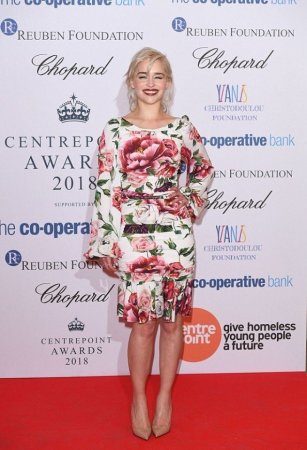 Молодая актриса Эмилия Кларк была приглашена в Кенсингтонский дворец, чтобы выступить перед присутствующими на церемонии вручения премии Centrepoint Awards с торжественной речью. Девушка прошлась по красной дорожке в восхитительном платье кремового цвета, которое было украшено крупным цветочным принтом. Минимальное количество аксессуаров, бежевые туфли-лодочки и яркая помада на губах, гармонирующая с оттенками роз, украшающих наряд, сделали образ 31-летней актрисы очаровательным и очень женственным.