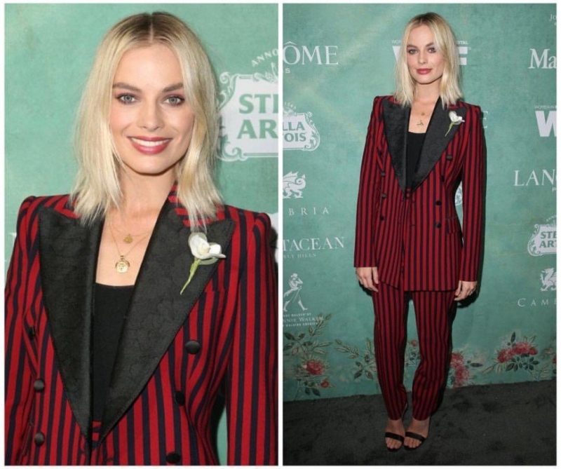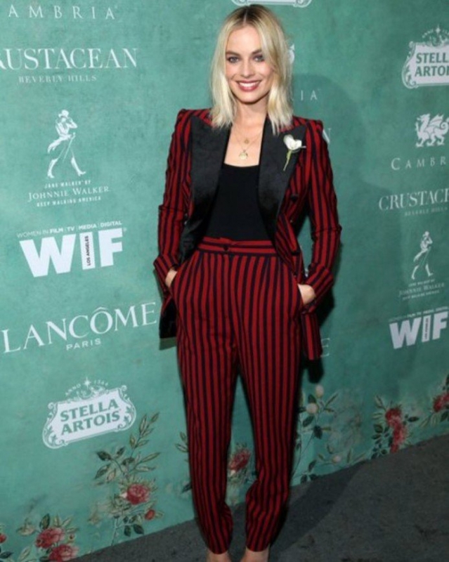 Робби выбрала костюм в красную и черную полоску от Dolce & Gabbana, дополнив образ скромными золотыми украшениями и легкой укладкой распущенных волос.Но, несмотря на детально продуманный образ Марго, интернет-пользователи все же сочли вид девушки очень нелепым, откровенно высмеяв его в социальных сетях.