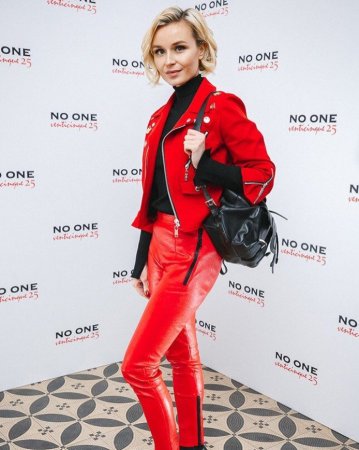 На днях артистка посетила вечеринку сети бутиков, приуроченную в честь 25-летия организации. На мероприятие Полина Гагарина нарядилась в нехарактерном для себя стиле, поразив всех облегающими кожаными ярко-красными штанами от модного бренда Louis Vuitton. К своему дерзкому и смелому образу Полина добавила косуху в тон и черные туфли на шпильке.