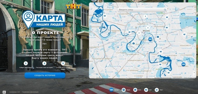 Один из самых популярных развлекательных телеканалов страны – ТНТ - запускает уникальный проект «Карта наших людей». Телеканал собирает истории улиц и городов, рассказанные самими жителями и объединяет эти истории, составляя большую интерактивную карту своих зрителей и подписчиков на сайте stories.tnt-online.ru.
