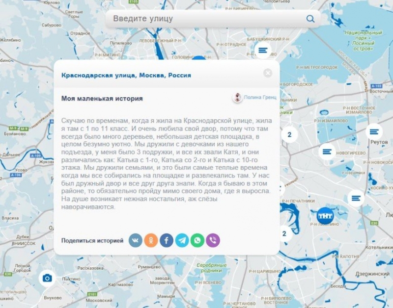 Каждый желающий может зайти на сайт stories.tnt-online.ru, найти в строке поиска свою улицу и город, нажать «Создать историю» и поделиться каким-то важным, значимым событием, которое произошло на улице, прикрепить к истории фото или видео, а также поделиться своей историей в социальных сетях.