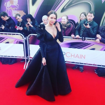 Анастасия появилась на красной дорожке Московского кинофестиваля в черном платье с глубоким декольте. Такой вырез, следуя правилам моды, можно было бы простить, если учитывать, что в остальном платье достаточно скромное, к тому же классического цвета.