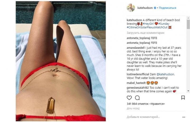 Обворожительная американская актриса Кейт Хадсон больше не скрывает от поклонников, что готовится в третий раз стать матерью. Звезда с удовольствием делится новыми «беременными» снимками в социальных сетях, однако фото оголенного и заметно округлившегося живота дочь Голди Хоун показала впервые. instagram.com/katehudson Голливудская актриса Кейт Хадсон не относится к той категории звезд, которые ревностно скрывают свою беременность от поклонников и прессы. Напротив, звезда комедийных мелодрам с легкостью призналась в том, что в ее семье грядет пополнение и теперь с удовольствием делится с подписчиками своего микроблога все более новыми фотографиями. Так, на днях актриса опубликовала первый снимок, на котором позирует с оголенным и заметно округлившимся животом в ярко-красном бикини. Интернет-пользователи не стали упускать возможность в очередной раз поздравить своего кумира с радостным событием. instagram.com/katehudson «Эта маленькая булочка в вашей духовке станет самой симпатичной девушкой, которая когда-либо рождалась!»«Ты такая милая с этим пузиком!! Поздравляю еще раз!»«Боже мой! Ты выглядишь потрясающе, Кейт!»«Красивое тело будущей мамочки! Поздравляем с очередным счастьем!»«Поздравляю, дорогая! Это счастье – носить под сердцем новую жизнь!» instagram.com/katehudson Напомним, что у актрисы уже есть двое детей от предыдущих отношений: 14-летний сын Райдер от музыканта Криса Робинсона и 6-летний сын Бингем от солиста Muse Мэттью Беллами.С конца 2016 года актриса официально объявила о том, что встречается с основателем звукозаписывающей компании Lightwave Records Дэнни Фудзикавой. А пару недель назад пара сообщила, что ждет в этом году рождения дочери.Ева.Ру начала публиковать выборочные лучшие статьи и обсуждения в свои группы в соцсетях. Подпишитесь на нас в Facebook, Instagram, Vkontakte, чтобы читать нас и всегда оставаться на связи. Спасибо!