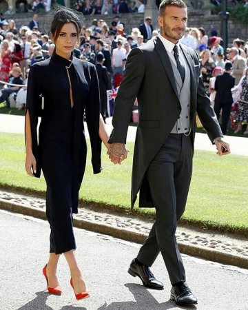 Дэвид и Виктория Бекхэм были среди тех, кому посчастливилось присутствовать на королевской свадьбе. Образ Дэвида, в котором он предстал перед объективами фотокамер на подходе к часовне Святого Георгия, заставил восхищенно замереть женскую часть зрителей. Темно-серый фрак идеально сидел на спортивной фигуре бывшего футболиста, а солнцезащитные очки добавляли 43-летнему мужчине сексуальности. Как отмечают все поклонницы мужчины, с годами он становится только привлекательнее.Кстати, темно-синее платье, выбранное для торжества его женой Викторией, совсем не оценили, сравнив его с траурным нарядом. Да и сама женщина многим показалось усталой и будто чем-то недовольной.