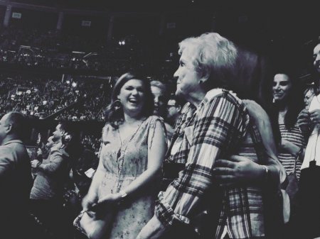 «В зале находится симпатичная маленькая леди, ей 88 лет, я познакомился с ней сегодня. Где бы ты не сидела в зале Так вот же она! Я люблю тебя!»